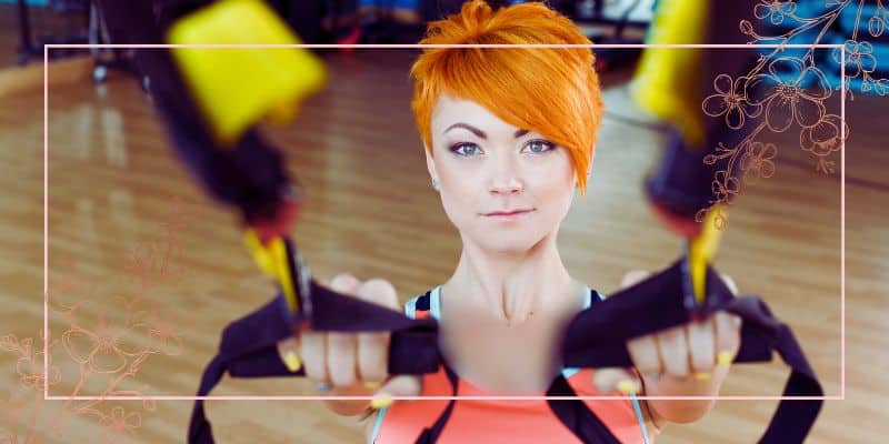 ۶_حرکت پارویی معکوس: این حرکت برای پایین کمر و عضلات شکم و بالاتنه بسیار عالیست. جهت انجام آن زیر تسمههای تی آر ایکس قرار بگیرید، به گونهای که سینه شما درست در زیر نقطه اتصال تسمه به پایه قرار گرفته باشد. پس از آن گیرههای تی آر ایکس را طوری بگیرید که کف هر دو دستتان در برابر هم قرار بگیرد. سپس زانوها را با زاویه ۹۰ درجه خم کرده و ضمن سفت کردن شکم، باسنتان را به حرکت درآورید. از طرفی عضلات شانه را فشرده ساخته و به کمک نیرو آن همه بدن خود را بالا بکشید تا جایی که دستهایتان در کنار قفسه سینه قرار بگیرد. بعد از انجام این کار بدن خود را به سمت پایین و به حالت قبلی برگردانید.